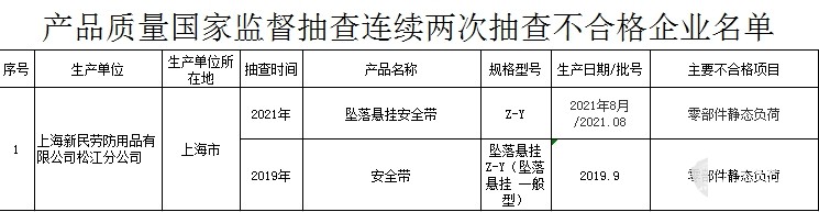 12月13日,市场监管总局发布2021年安全防范产品质量国家监督抽查情况,本次抽查了228家企业生产的238批次产品,涉及安全带、安全网、锁具、人民币鉴别仪等4种安全防范产品,共发现12批次产品不合格,不合格发现率为5.0%。本次跟踪抽查到上次不合格企业8家,有1家企业本次抽查仍不合格,7家企业合格。